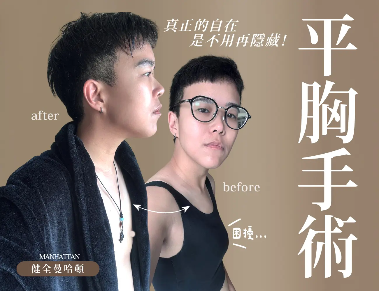 現今社會風氣漸開放,如同「多元成家」的議題也總是被討論著,甚至也已成為立法與否的討論內容。平胸手術,簡單來說就是將乳房組織拿掉切除乳腺及脂肪後,還須保留乳頭和乳暈。一般女性乳暈比男性大,因此必須適度縮小,乳頭乳暈位置也要一併重新調整,轉移到與男性乳頭差不多的位置,因此手術更顯複雜,技術難度更高。
